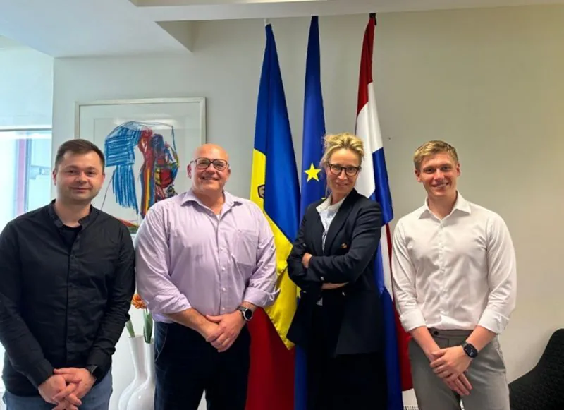 Denis Rusu, Nolte Mezzanine, Team Leader Moldova. Manuel Villena, CEO Nolte Mezzanine. Maaike Keizer plv. Ambassadeur van de Nederlandse Ambassade Moldavië. Valerian Moraru Senior Economic Affaris Officer van de Nederlandse Ambassade Moldavië.