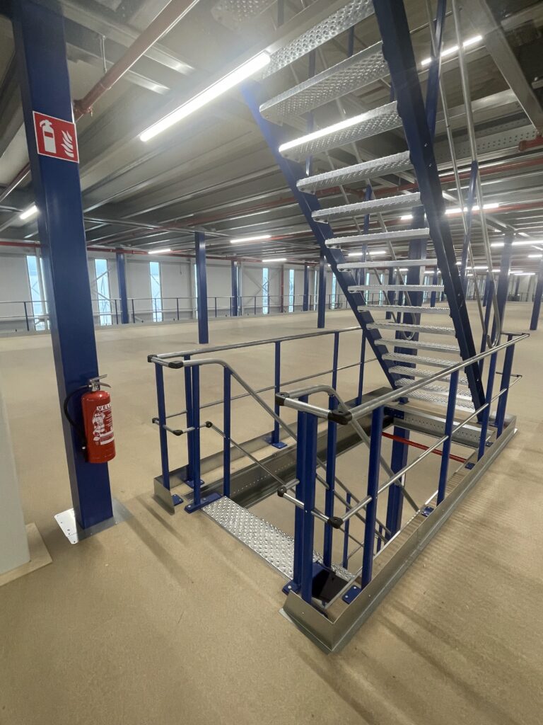 - Keuring/CE: de mezzaninevloer doorstond alle noodzakelijke keuringen en voldeed aan de hoogste CE-normen, wat de kwaliteit en veiligheid van de constructie garandeert.