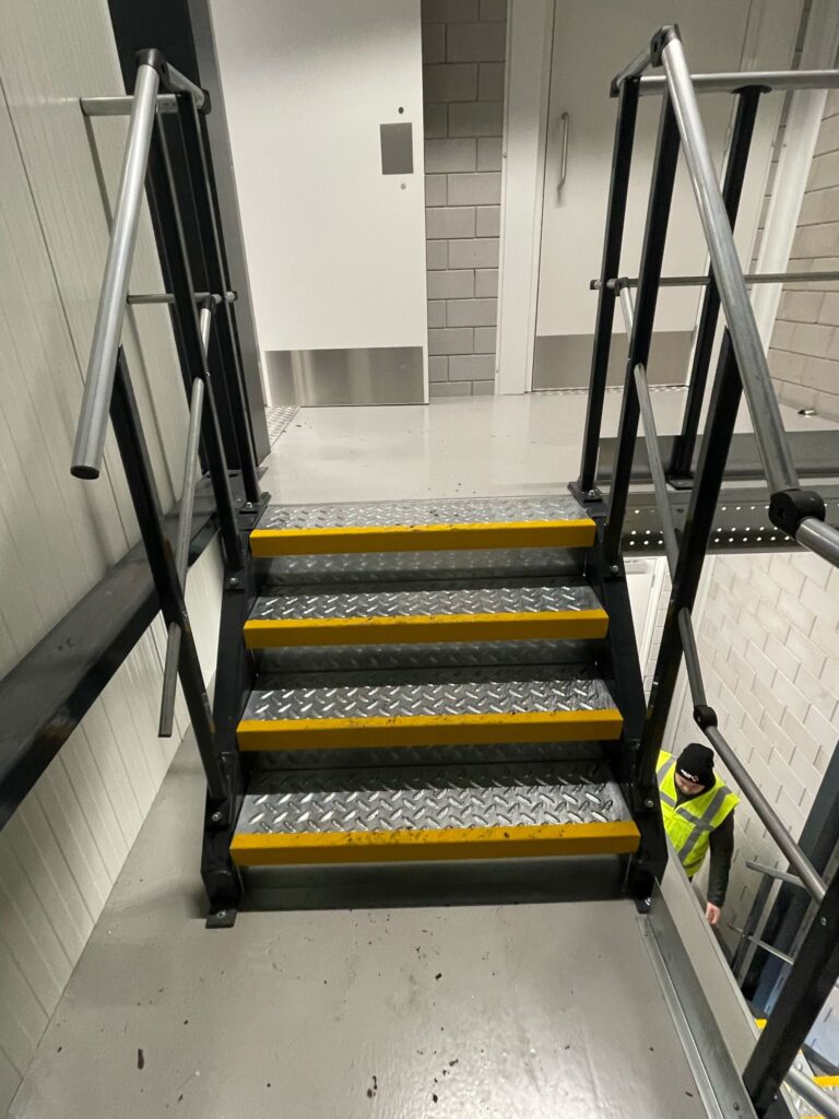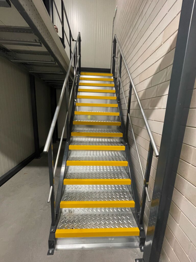 In de mezzanine die wij voor Safestore maakten is gebruik gemaakt van koudgewalste profielen met een raster van ongeveer 3.000 x 3.000. Er is gekozen voor een spaanplaat vloerafwerking. Deze vloerplaten zijn vervolgens voorzien van een expoxy vloercoating, bestaande uit twee componenten. Daarnaast zijn er ook nog trappenhuizen gemaakt, voorzien van antislipstrips voor een hogere veiligheid.