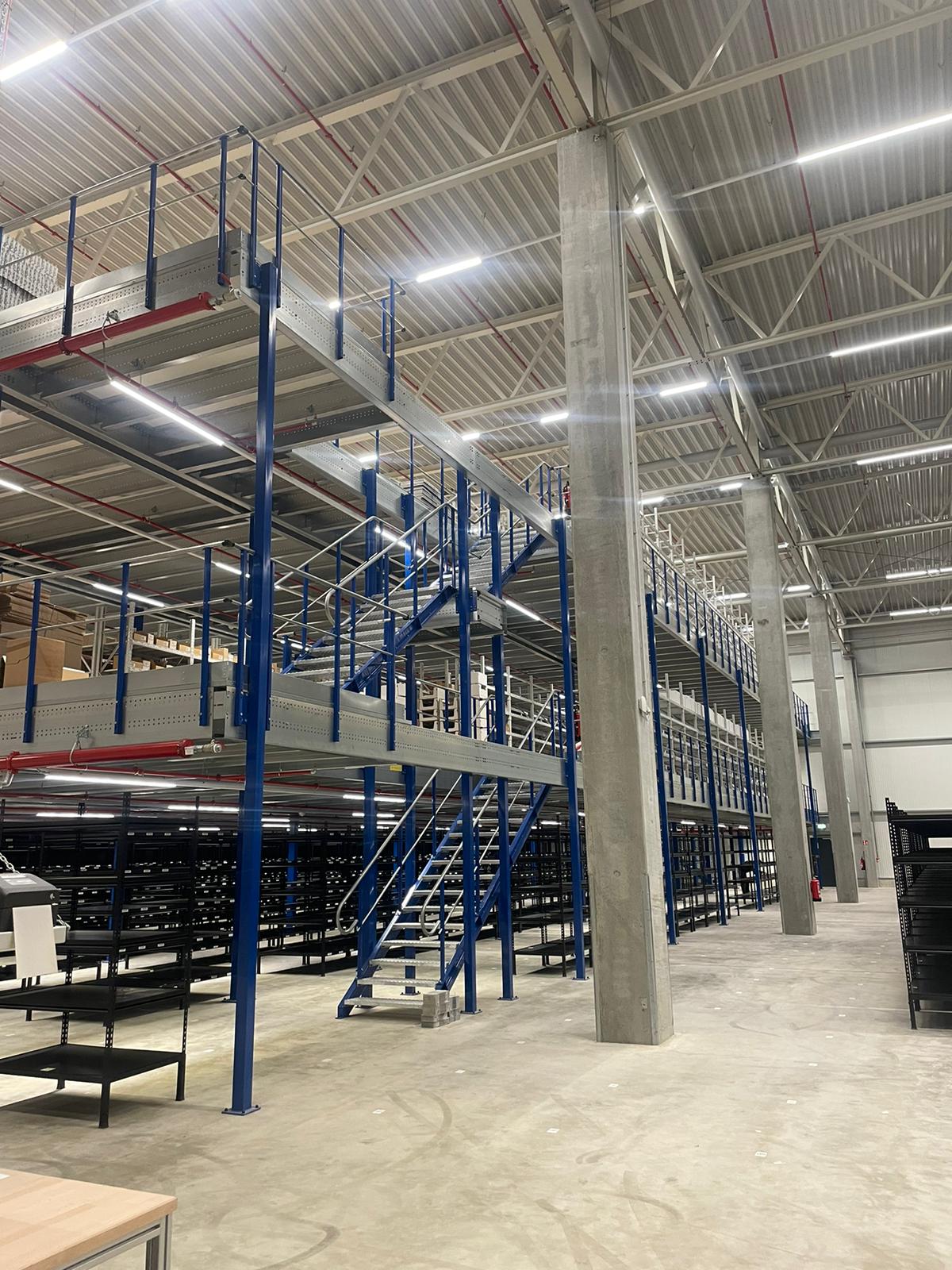 Entresolvloer van 1.804 m² met twee verdiepingen verdrievoudigt de opslagcapaciteit en zorgt voor een efficiëntere logistieke inrichting in Plauen
