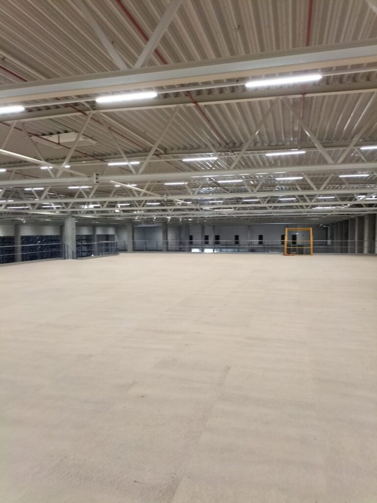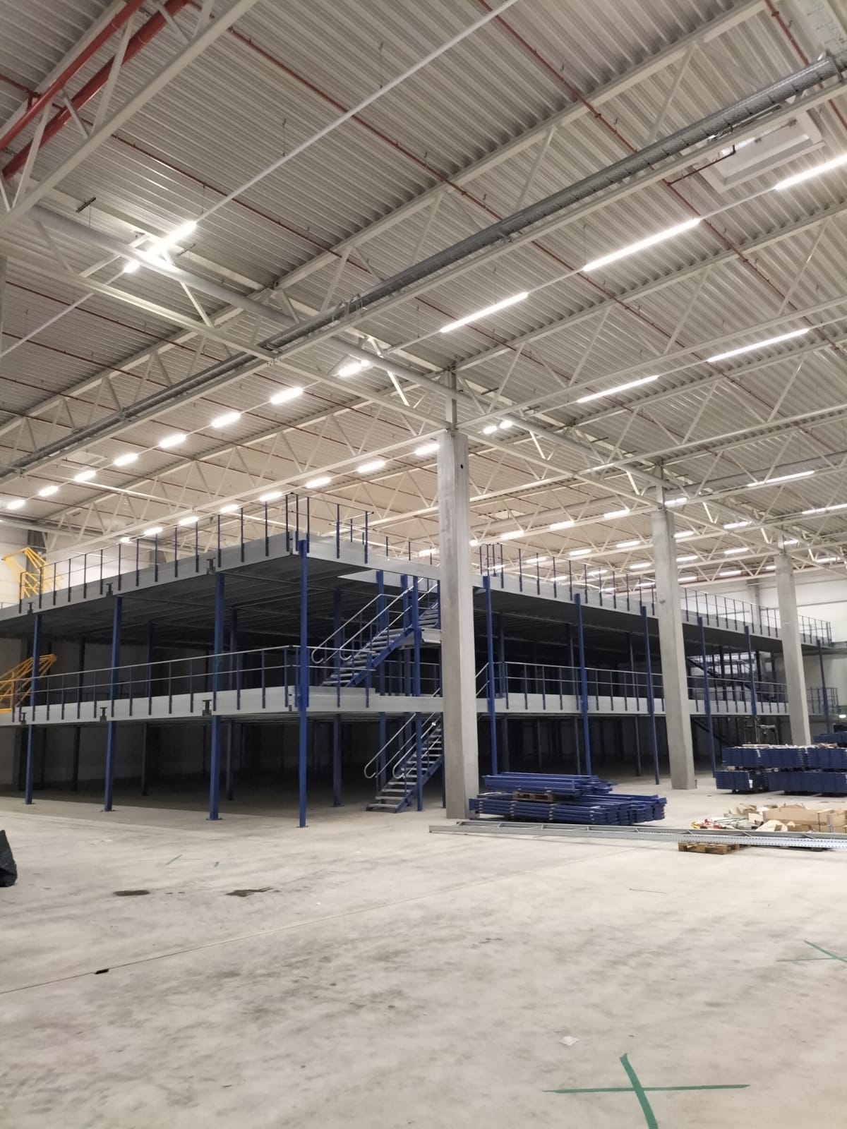 De entresolvloer werd opgebouwd uit koudgewalste profielen met een kolomraster van circa 5.000 x 5.300 mm en voorzien van een spaanplaat vloerafwerking. Met vloerhoogtes van +2.600 mm en +6.796 mm en stabiliteit door portalen en kruisschoren, is de constructie robuust en geschikt voor intensief gebruik. Deze oplossing maakt optimaal gebruik van de beschikbare hoogte en biedt de klant maximale opslagcapaciteit.