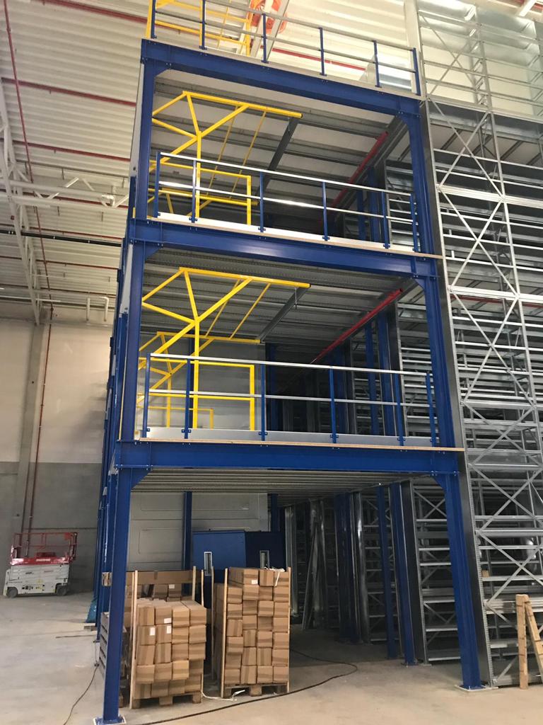 Voor Stute Logistics realiseerden we een drie verdiepingen mezzanine van 1.400 m², wat opslag en orderpick-efficiëntie verbeterde.