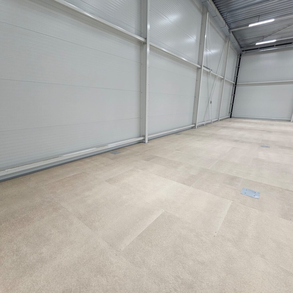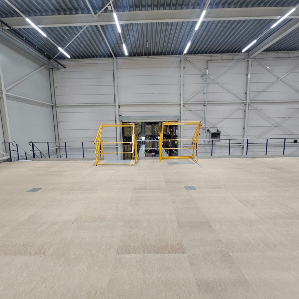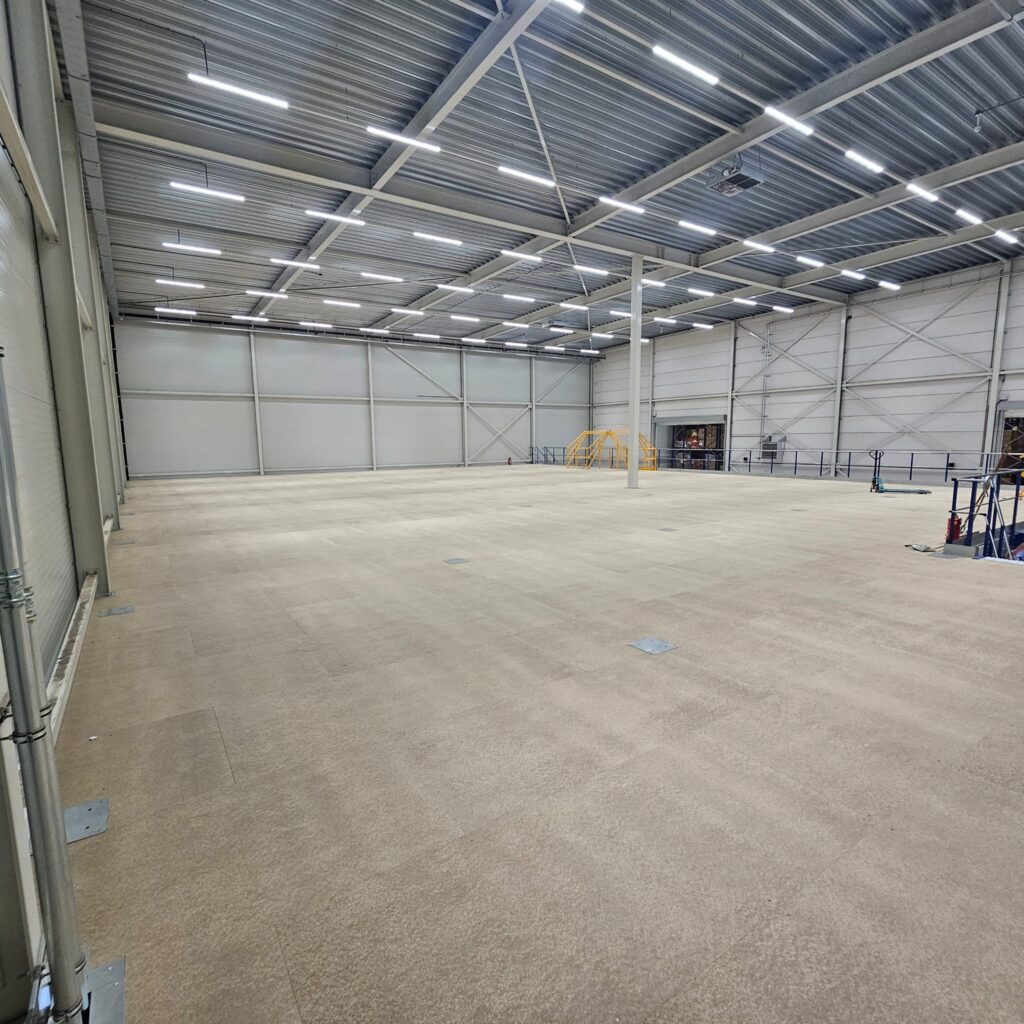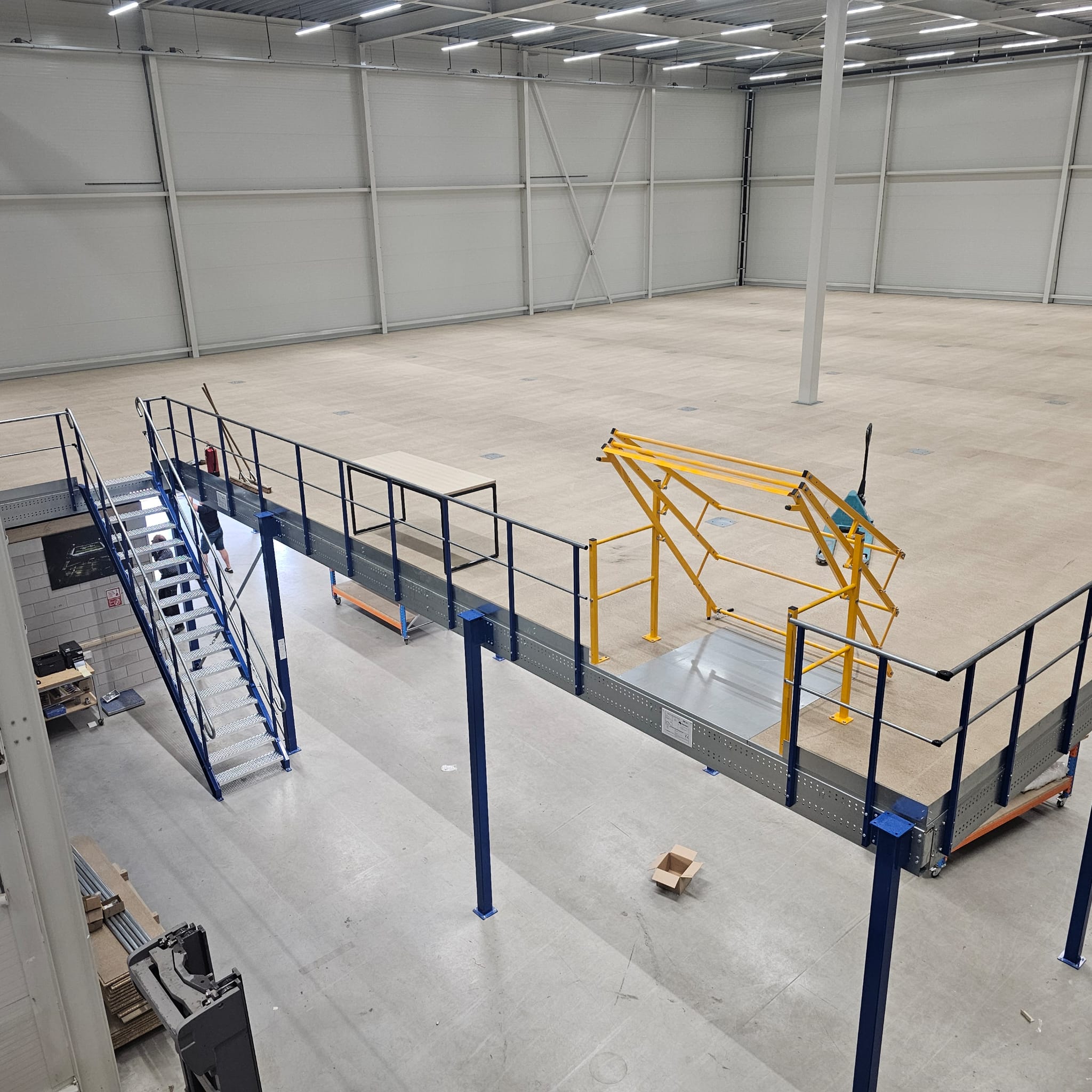 Om de ruimte optimaal te benutten, hebben we voor terStal een mezzaninevloer gerealiseerd, opgebouwd uit koudgewalste profielen en afgewerkt met een houten spaanplaat vloer. Deze constructie verdubbelde hun benutbare ruimte van 667 m² naar 1334 m². De mezzanine is ontworpen met het oog op toekomstbestendige uitbreiding, zodat de vloer indien nodig kan worden uitgebreid naar een tweede verdieping.