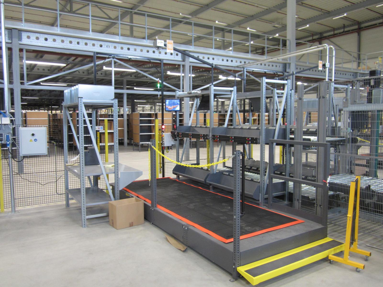 De entresolvloer werd opgebouwd met koudgewalste profielen en een kolomraster van ongeveer 7.000 x 6.000 mm, voorzien van een spaanplaat vloerafwerking. De vloerhoogte van +4.400 mm en de toevoeging van schoren zorgen voor een stabiele constructie die geschikt is voor intensief gebruik als opslag- en pickingtower. Deze oplossing combineert maximale capaciteit met logistieke efficiëntie.